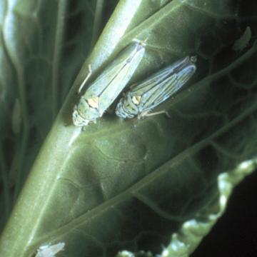 Blue-green sharpshooter (Graphocephala atropunctata) transmits Xylella fastidiosa and has a large host range, including palms, grasses, and grapes.